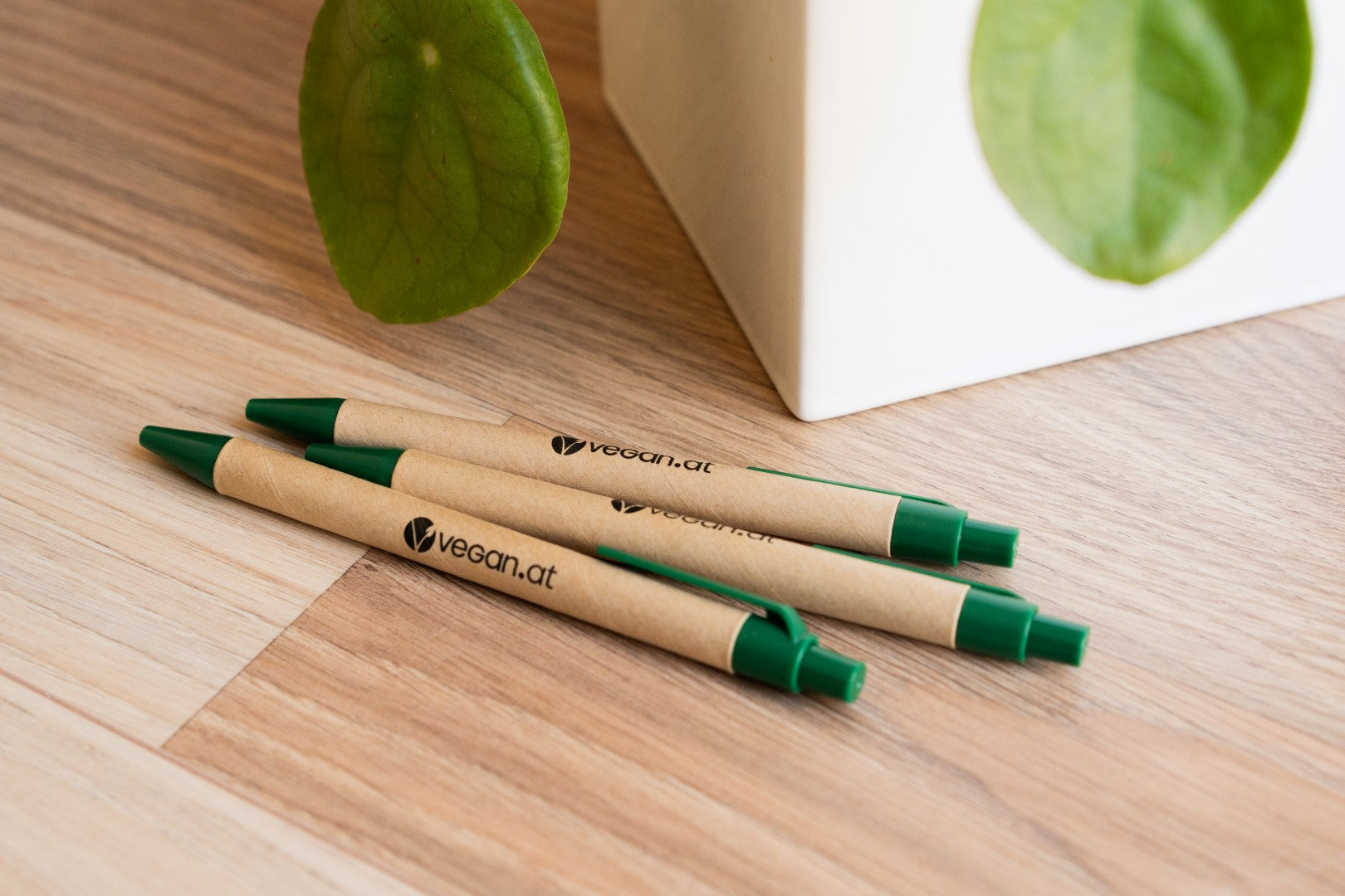 Ökologischer Kugelschreiber mit Message "VEGAN.AT".